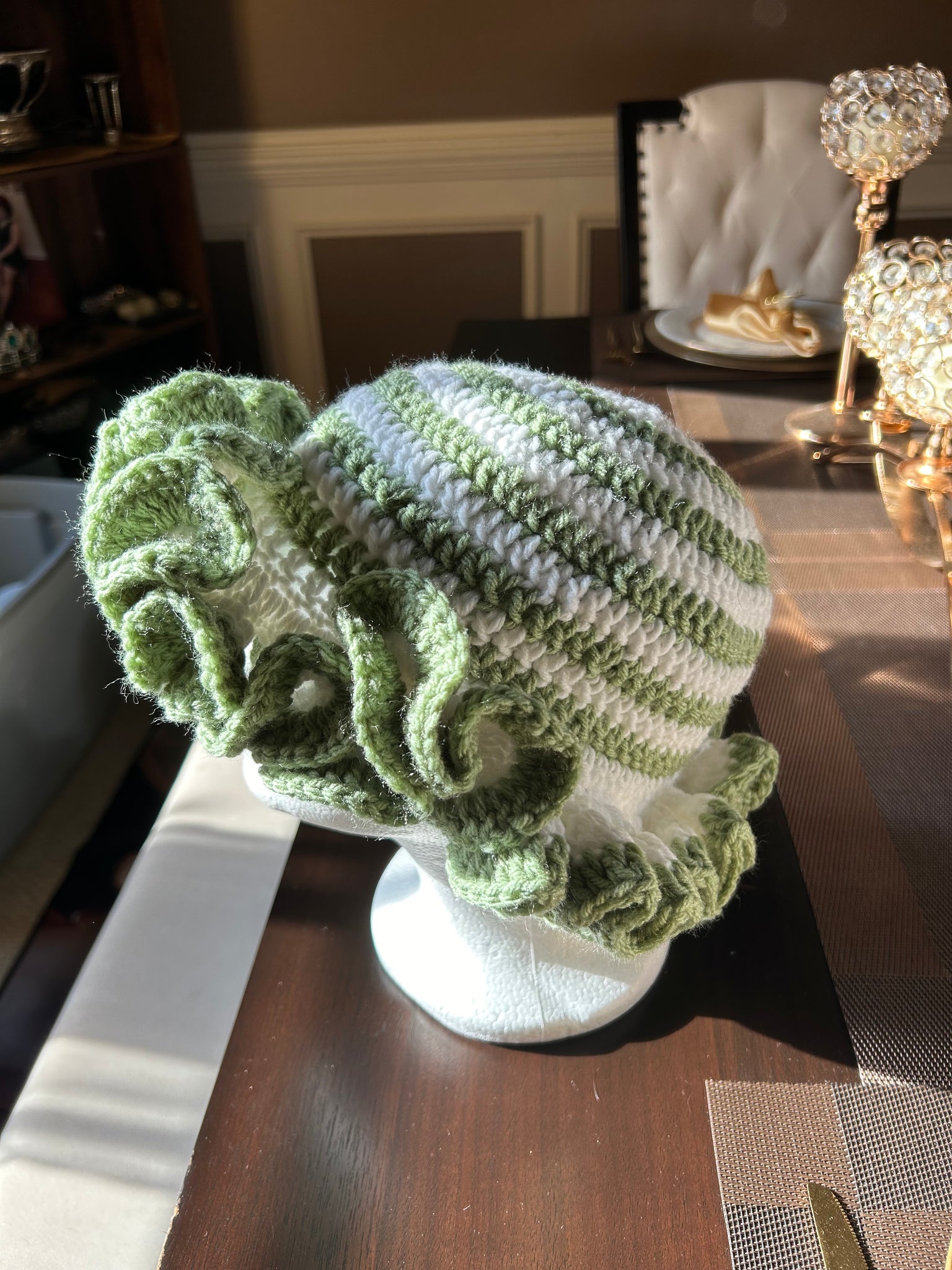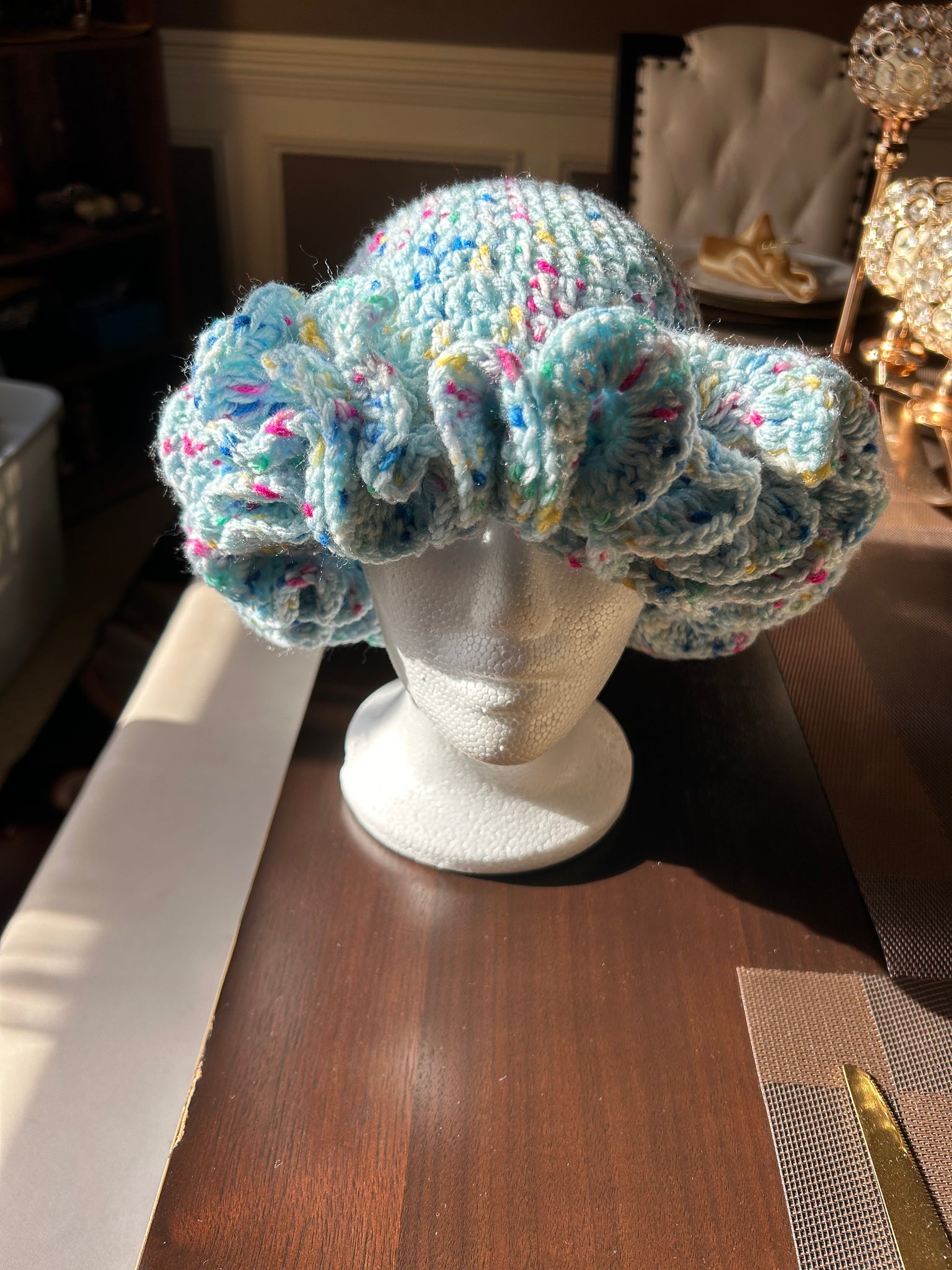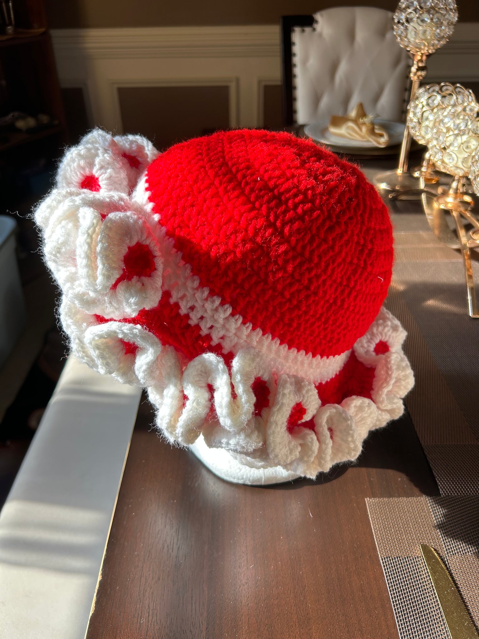 Bucket hats with two rolls of ruffles for children or three rolls of riffles for adults. Please give 14-21 business days for shipping. Hats are made when purchased.